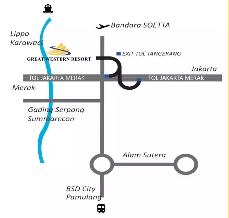 Great Western Resort berlokasi hanya 2 Menit dari Exit Toll Serpong – JKT, Sekitar 5 Menit dari Gading Serpong, Walking Distance ke Marcopolo Waterboom.