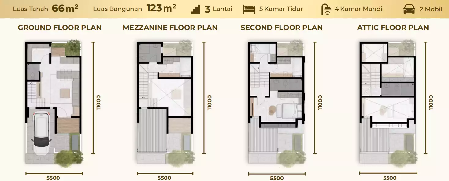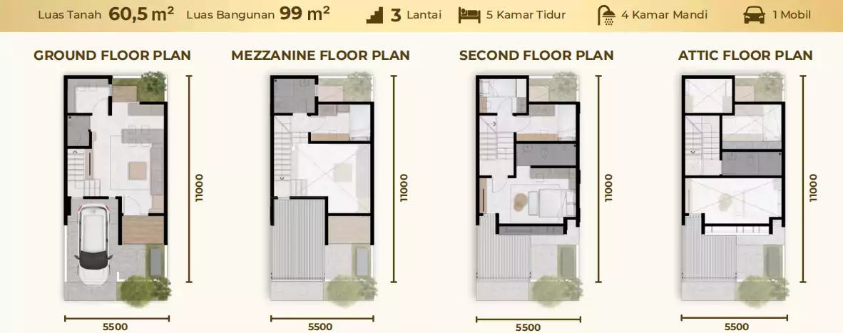 Tersedia Rumah Tipe 5.5×11, 6×11, dan 8×12.